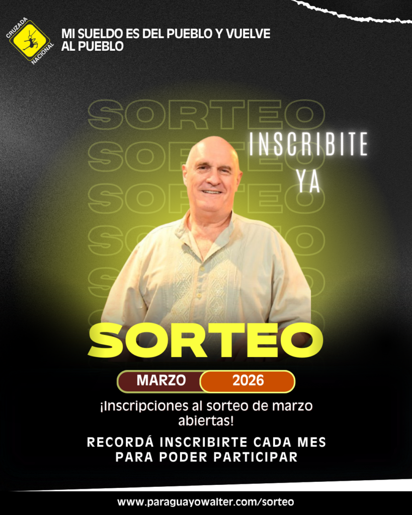 Se invita a todas las personas interesadas a registrarse lo antes posible y a seguir las redes sociales oficiales del senador (@walterkobylanskipy) para conocer la fecha exacta de la transmisión en vivo donde se dará a conocer al ganador de este mes.